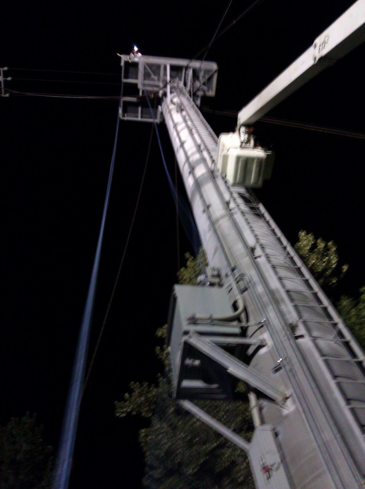 I met a coworker at the shops at 9pm. Keep in mind, I'd already pulled a regular 8 hour day yesterday, then came back. I had a list that D gave me of things to bring. I was pleased that I knew all of the things on the list, they were all familiar to me, since I'm finally getting a hang of this ferry stuff. I hooked up the truck to a light plant (basically a big diesel generator attached to 4 hugely powerful lights. when you see work being done at night on the interstate and it's lit up like daylight? light plants.), and away we went. The other guy drove a bucket truck.